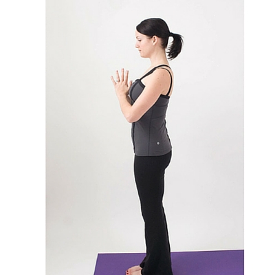 يركز هذا بشكل أساسي على تنفسك. قف طويلاً ، وضع اليدين معاً أمام صدرك ، وانحنى رأسك قليلاً بثبات لمدة 30 نفسًا عميقًا.