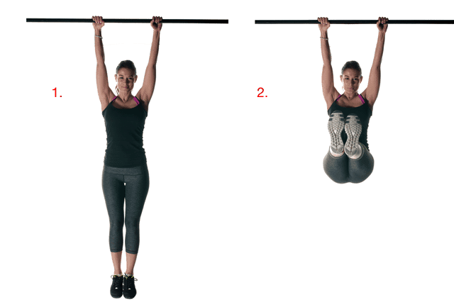 • يتم التعلق في القضيب من خلال التشبت باليدين مع بعضهم البعض مع الحرص على جعل مستواهم أبعد من مستوى الكتفين.