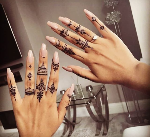 - الاطلاع على التصاميم المختلفة للحناء: فهناك العديد من الرسومات الحديثة والجذابة التي ترسم على الأصابع، ويمكن الاختيار من بينها، مثل قطرات المياه، والأنماط المتقاطعة، والنجوم.
